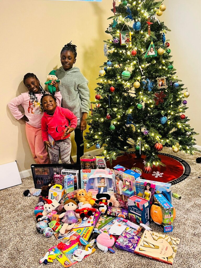 Freida was thrilled to see her daughters smiling as they received everything from baby dolls and Barbies to games, art kits, and huggable plushies.