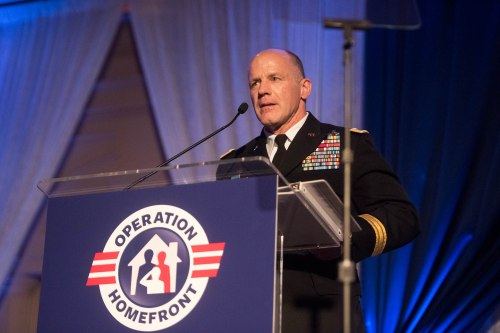 Lt. Gen. Stephen Lyons, Director for Logistics, representing General Joseph Dunford and the Joint Chiefs of Staff, delivered remarks that underscored the importance of the military family, particularly the children, in ensuring our nation has a ready force. “The decision of our service members to remain serving in our nation’s military is most often made at the dinner table,” said Gen. Lyons. “The way organizations like Operation Homefront care for our families and support children like these helps us keep our forces engaged and strong.”